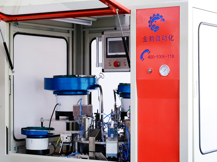 浙江金豹自動化有限公司坐落于享有“電器之都”之稱的樂清市,專業從事自動化生產設備的研發(fā)、生產、銷售??砂从脩粢蠖ㄖ品菢俗詣踊O備,為各類開關元件、插座元件廠家提供自動化生產解決方案和技術支持。 公司擁有先進的生產設備,經驗豐富的工程設計研發(fā)團隊,專業的生產隊伍,嚴格的產品檢驗制度,確保產品的穩(wěn)定性,可靠性和長壽命。經過多年的研發(fā)并吸取國際機械技術之精華,采用先進的生產工藝,并達到國際同行先進水平。 本公司產品廣泛應用于機械、電子、汽車電氣、接插件、標準件、軸承、醫(yī)療品械、五金等行業。特別本公司設計制造的 輕觸開關裝配機、DC插座自動組裝機、按鈕開關裝配機、自動銀點鉚接機及船型開關自動組裝機,贏得了廣大客戶的高度評價。  …